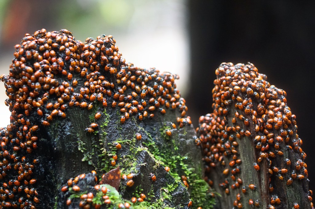 With every turn I took in this forest, I was baffled by the splendor of nature. Being enveloped in nothing but greenery and mist was really awe inspiring. Even the banana slugs and ladybugs that had huddled together for winter hibernation drew me in. What can I say, I’m a sucker for a cute invertebrate.